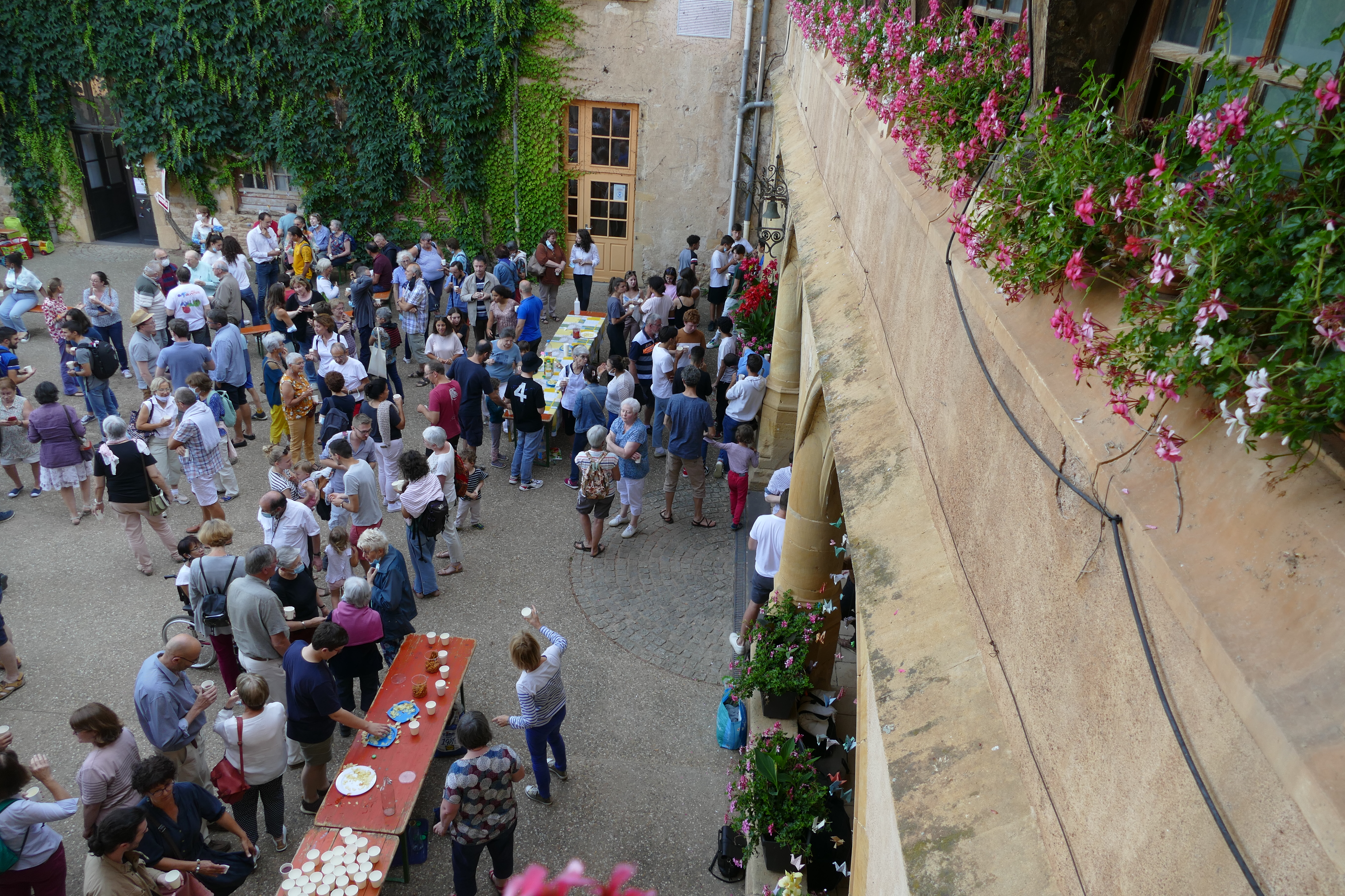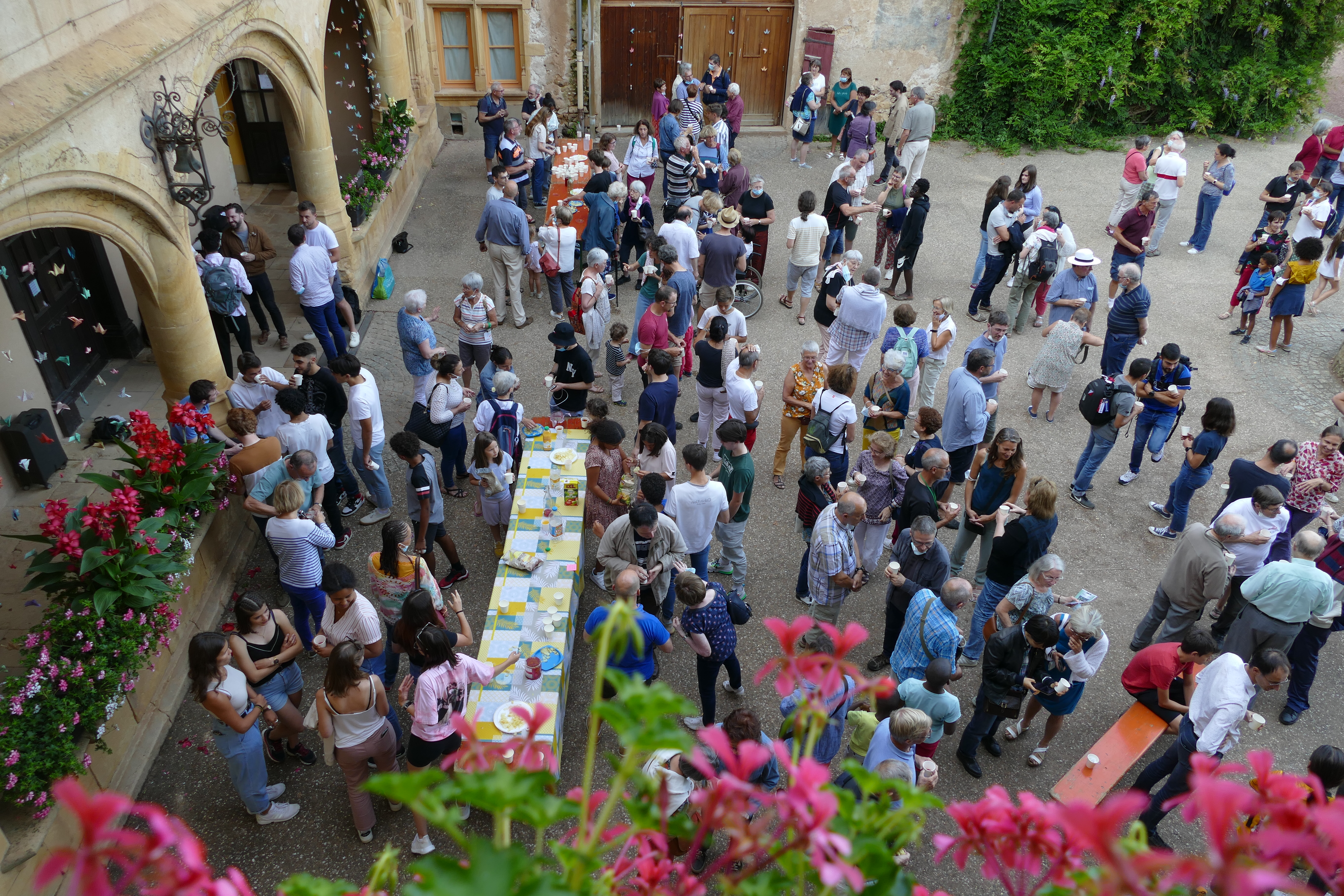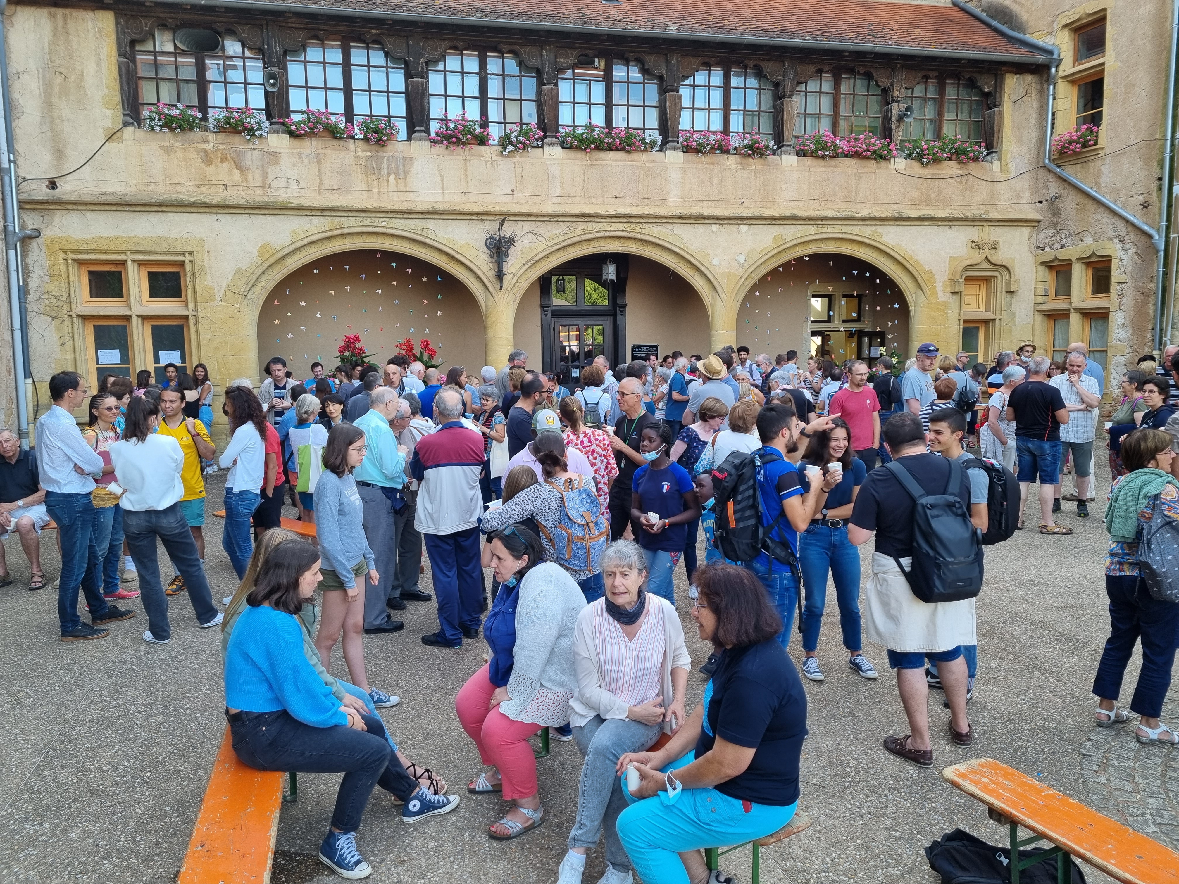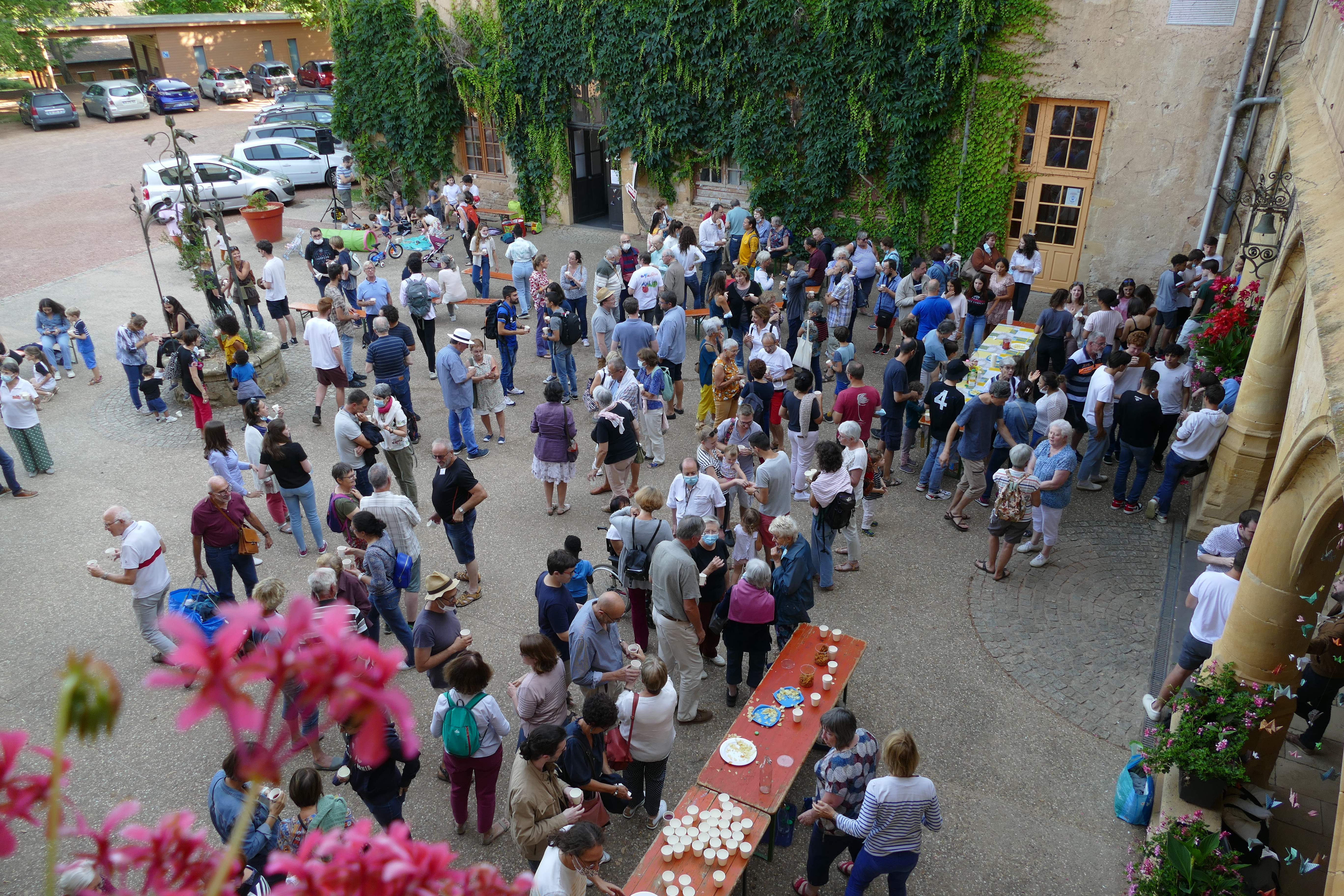 A 18 heures, nous sommes plus de 300 à nous rassembler pour un apéritif de bienvenue : joie de sentir bien accueilli, de faire connaissance ou de retrouver des amis !